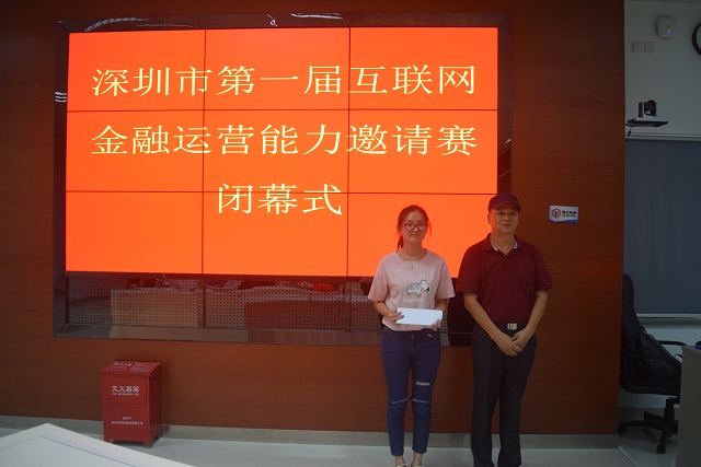 深圳大學經(jīng)濟學院金融系主任徐進教授為大賽一等獎獲得者頒獎