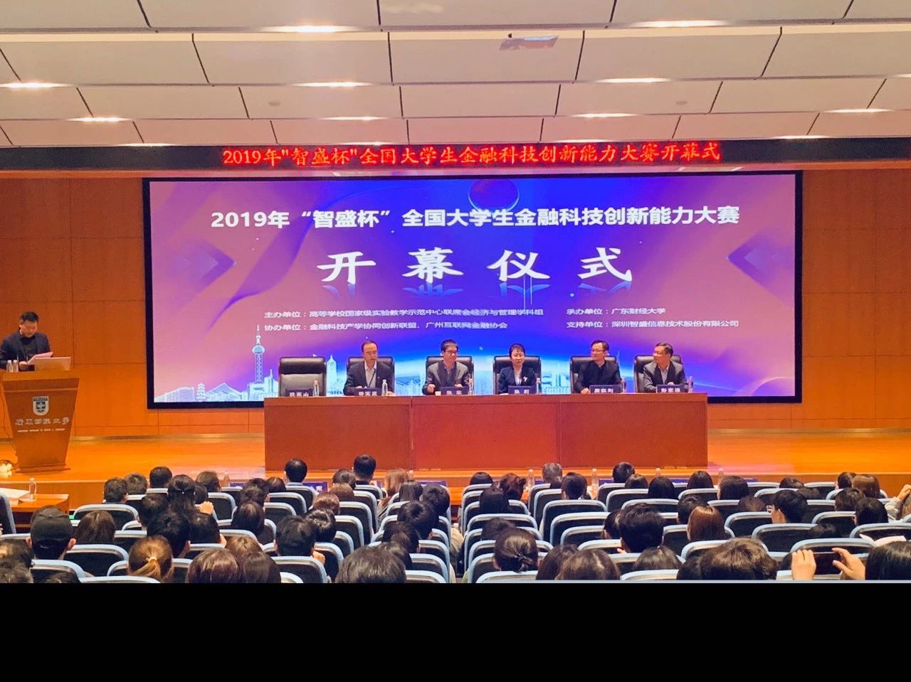 2019年“智盛杯”全國(guó)大學(xué)生金融科技創(chuàng)新能力大賽在廣東財(cái)經(jīng)大學(xué)國(guó)際學(xué)術(shù)報(bào)告廳正心堂盛大開幕。教育部高等學(xué)校國(guó)家級(jí)實(shí)驗(yàn)教學(xué)示范中心聯(lián)席會(huì)經(jīng)管學(xué)科組副組長(zhǎng)張莉、教育部高等學(xué)校國(guó)家級(jí)實(shí)驗(yàn)教學(xué)示范中心聯(lián)席會(huì)經(jīng)管學(xué)科組秘書長(zhǎng)周紅剛、天津大學(xué)管理與經(jīng)濟(jì)學(xué)部副主任楊寶臣裁判長(zhǎng)、廣東財(cái)經(jīng)大學(xué)教務(wù)處處長(zhǎng)張軍、廣東財(cái)經(jīng)大學(xué)金融學(xué)院院長(zhǎng)段軍山、深圳智盛信息技術(shù)股份有限公司董事長(zhǎng)彭家源出席本次開幕式。廣東財(cái)經(jīng)大學(xué)金融學(xué)院段軍山院長(zhǎng)主持本次開幕式,最后,張軍處長(zhǎng)宣布 2019年“智盛杯”全國(guó)大學(xué)生金融科技創(chuàng)新能力大賽正式開幕。