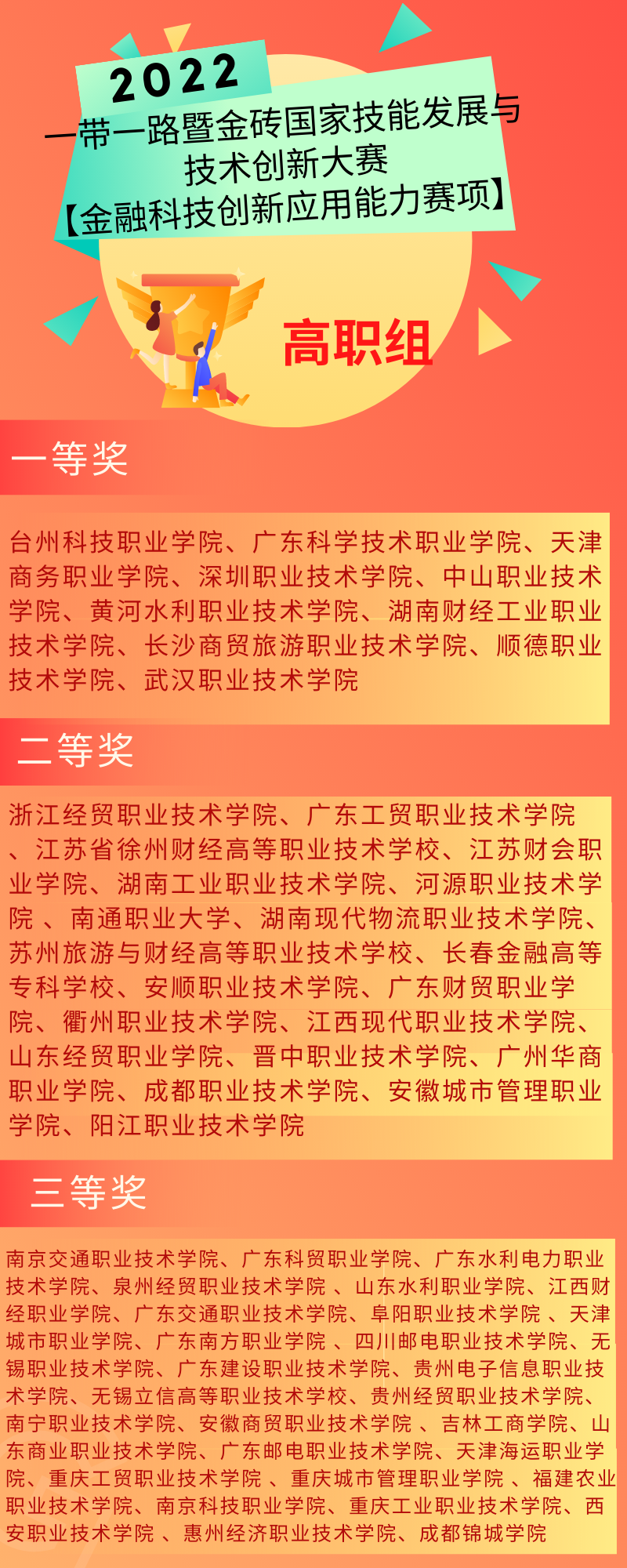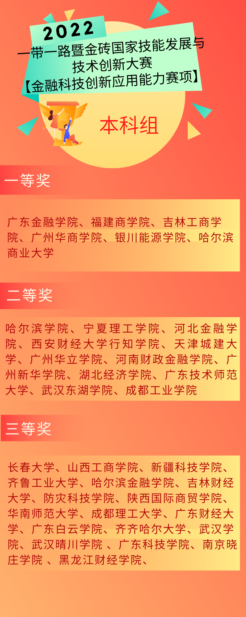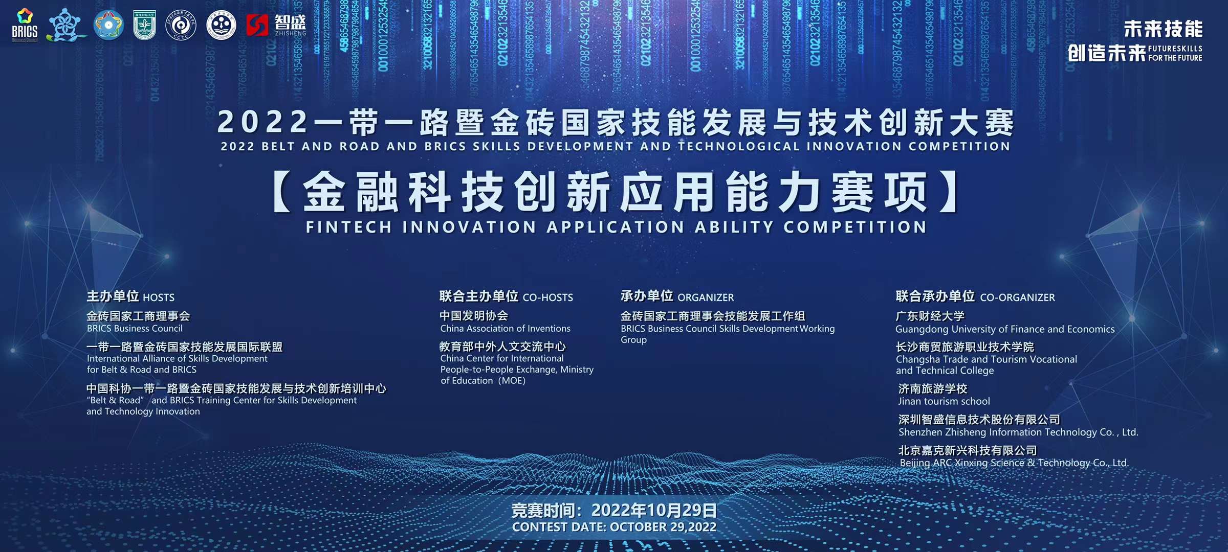 10月29日至30日,由金磚國(guó)家工商理事會(huì)、一帶一路暨金磚國(guó)家技能發(fā)展國(guó)際聯(lián)盟、中國(guó)科協(xié)一帶一路暨金磚國(guó)家技能發(fā)展與技術(shù)創(chuàng)新培訓(xùn)中心等機(jī)構(gòu)主辦;由金磚國(guó)家工商理事會(huì)技能發(fā)展工作組承辦;廣東財(cái)經(jīng)大學(xué)、長(zhǎng)沙商貿(mào)旅游職業(yè)技術(shù)學(xué)院、濟(jì)南旅游學(xué)校、深圳智盛信息技術(shù)股份有限公司共同承辦的2022年“一帶一路”金磚國(guó)家技能發(fā)展與技術(shù)創(chuàng)新大賽“金融科技創(chuàng)新應(yīng)用能力賽項(xiàng)”國(guó)內(nèi)總決賽采用線上的方式舉行。本次大賽分為本科、高職和中職三個(gè)賽道,吸引了來(lái)自全國(guó)190多所學(xué)校共760名選手參賽。