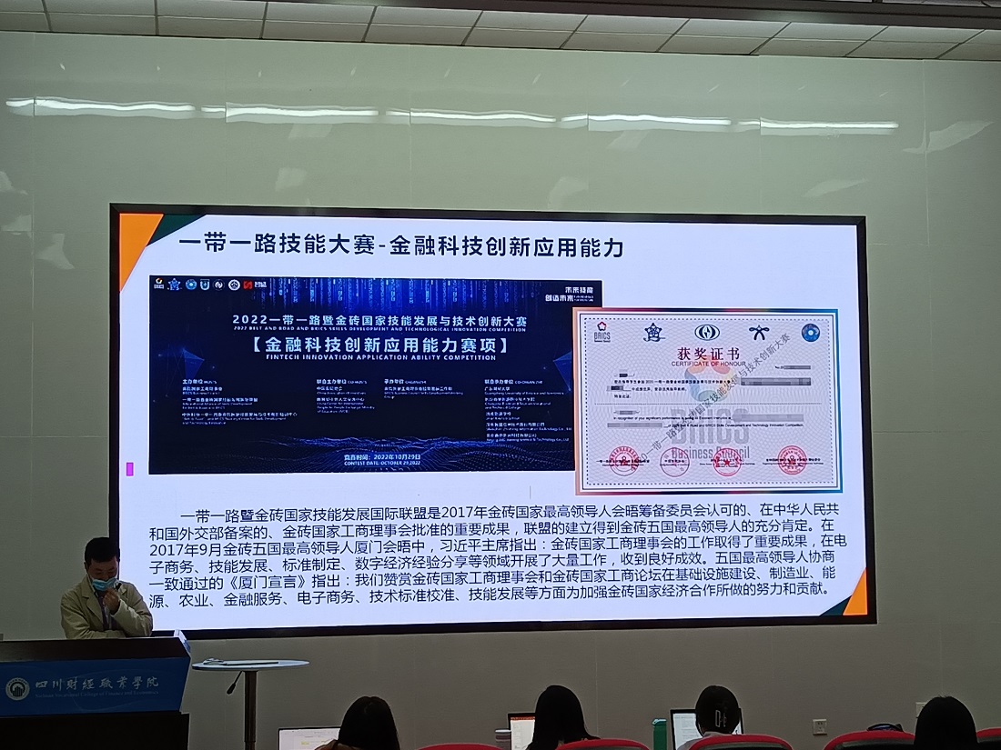 在比賽期間,四川財經(jīng)職業(yè)學(xué)院金融學(xué)院協(xié)同李琳名師工作室在B210展開數(shù)字化金融人才培養(yǎng)研討會。此次會議由四川財經(jīng)職業(yè)學(xué)院金融科技教研室主任李馨老師主持,參加此次會議的有各職業(yè)院校領(lǐng)隊、指導(dǎo)老師和四川財經(jīng)職業(yè)學(xué)院金融學(xué)院全體專任教師。本次研討會采取線上線下相結(jié)合的方式,同時通過“騰訊會議”在線上同步開展。
