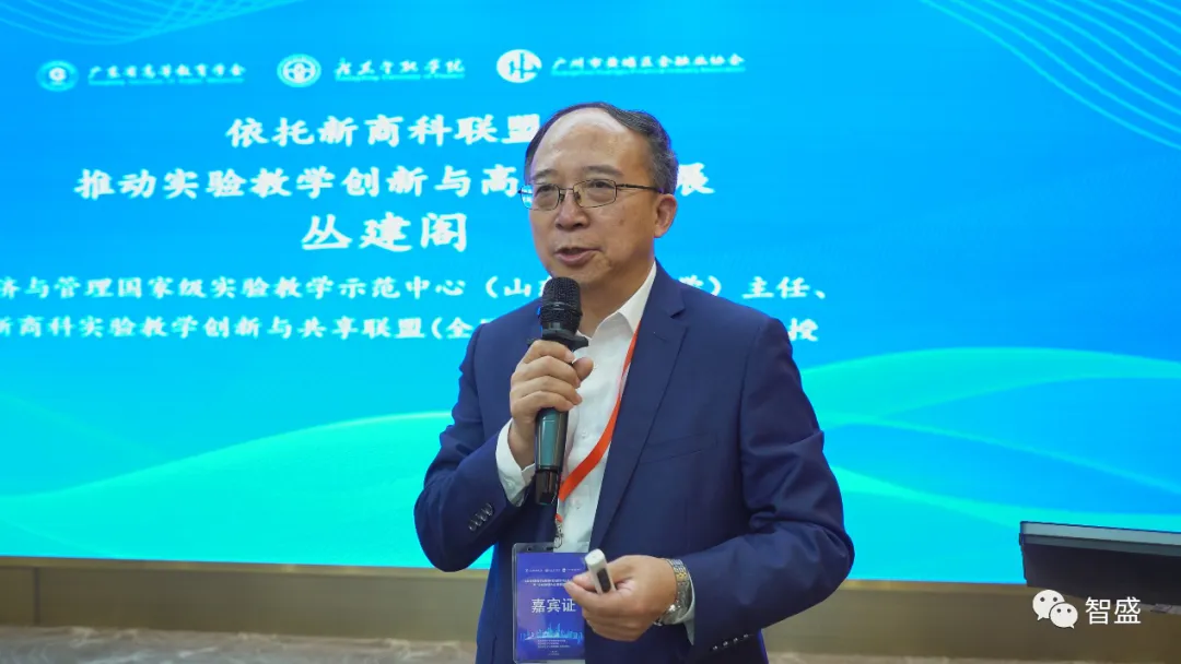 經(jīng)濟(jì)與管理國(guó)家級(jí)實(shí)驗(yàn)教學(xué)示范中心(山東財(cái)經(jīng)大學(xué))主任、新商科實(shí)驗(yàn)教學(xué)創(chuàng)新與共享聯(lián)盟(全國(guó)/山東)秘書(shū)長(zhǎng)叢建閣教授以“依托新商科聯(lián)盟推動(dòng)實(shí)驗(yàn)教學(xué)創(chuàng)新與高質(zhì)量發(fā)展”為題作報(bào)告。