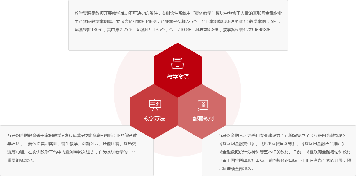 互聯(lián)網(wǎng)金融創(chuàng)新思維教育:通過(guò)場(chǎng)景化的情景展示,為學(xué)生提供解決案例問(wèn)題的真實(shí)的職業(yè)環(huán)境,使學(xué)生置身于實(shí)踐環(huán)境,將教學(xué)案例歸類至各類崗位需求中,明確提出每個(gè)教學(xué)案例需要學(xué)習(xí)的知識(shí)點(diǎn)和技能點(diǎn)以及需要達(dá)到的學(xué)習(xí)效果,實(shí)現(xiàn)了案例庫(kù)直通行業(yè)、直通崗位的功能,體現(xiàn)本案例庫(kù)的專業(yè)性。