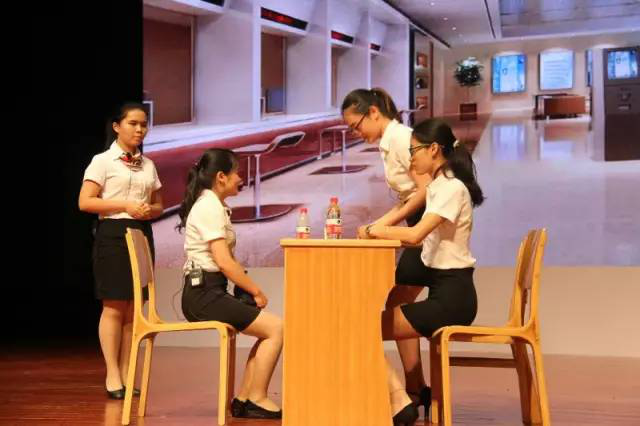 根據(jù)比賽規(guī)程,最終成績(jī)排在前十名的代表隊(duì),將進(jìn)行銀行服務(wù)情景演練項(xiàng)目展示,上圖為入圍代表隊(duì)的現(xiàn)場(chǎng)展示。