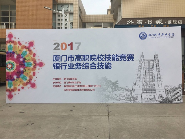 為進(jìn)一步提高學(xué)生理論知識(shí)水平與業(yè)務(wù)操作技能,加強(qiáng)學(xué)生對(duì)金融產(chǎn)品的感性認(rèn)識(shí),11月4日,2017廈門(mén)市高職院校技能競(jìng)賽“銀行業(yè)務(wù)綜合技能”競(jìng)賽成功舉辦。競(jìng)賽是由廈門(mén)市教育局主辦、廈門(mén)城市職業(yè)學(xué)院承辦、深圳智盛信息技術(shù)股份有限公司提供技術(shù)支持,面向全國(guó)高職院校學(xué)生舉辦的競(jìng)賽項(xiàng)目。