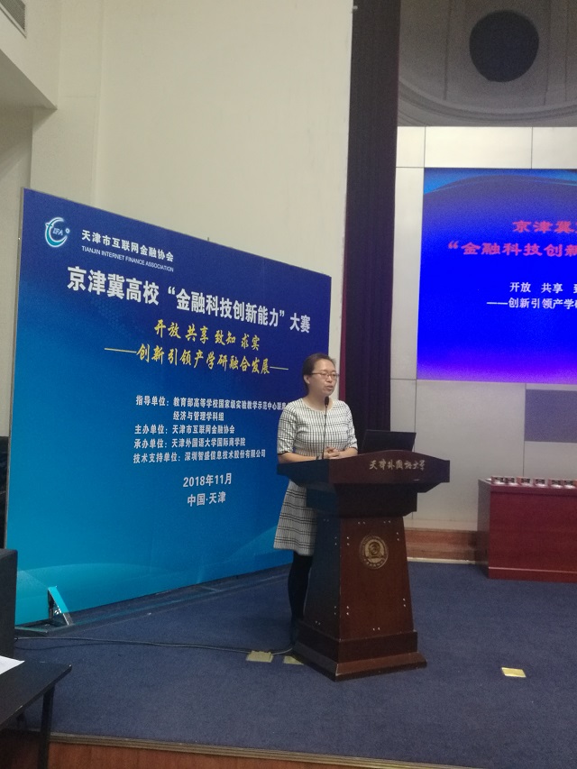 2018年11月,京津冀金融科技創(chuàng)新能力大學(xué)暨2018年“智盛杯”全國大學(xué)生金融科技創(chuàng)新能力大賽京津冀地區(qū)選拔賽在天津外國語大學(xué)國際商學(xué)院拉開帷幕。