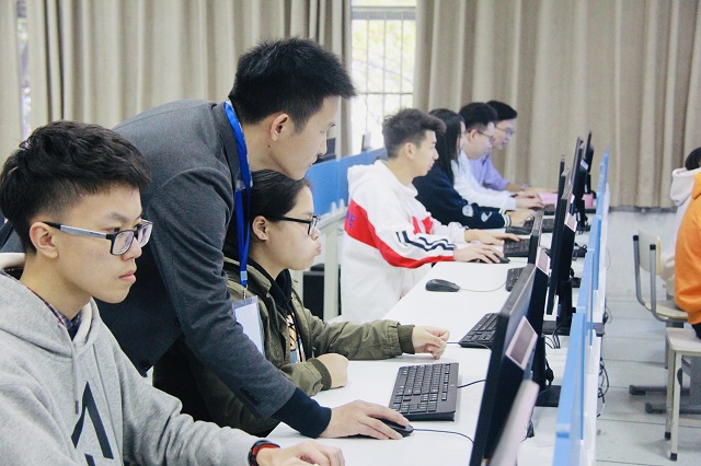 隨著時(shí)間的流逝,現(xiàn)場(chǎng)的氛圍達(dá)到了最高峰,賽場(chǎng)上只剩下敲擊鍵盤的聲音,選手們?nèi)硇牡耐度氲奖荣惍?dāng)中。