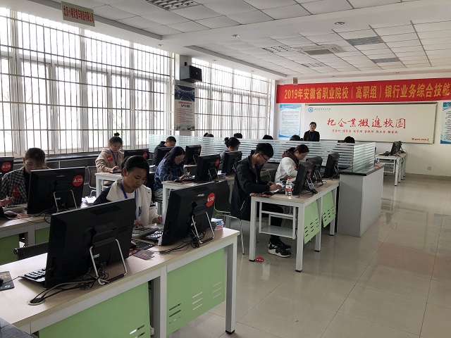2019年安徽省職業(yè)院校技能大賽(高職組)“銀行業(yè)務(wù)綜合技能”競(jìng)賽在安徽財(cái)貿(mào)職業(yè)學(xué)院實(shí)訓(xùn)樓舉辦,本次銀行競(jìng)賽參賽人數(shù)再創(chuàng)新高,共有來(lái)自全省24所高職院校,41支代表隊(duì),164名選手參加賽。