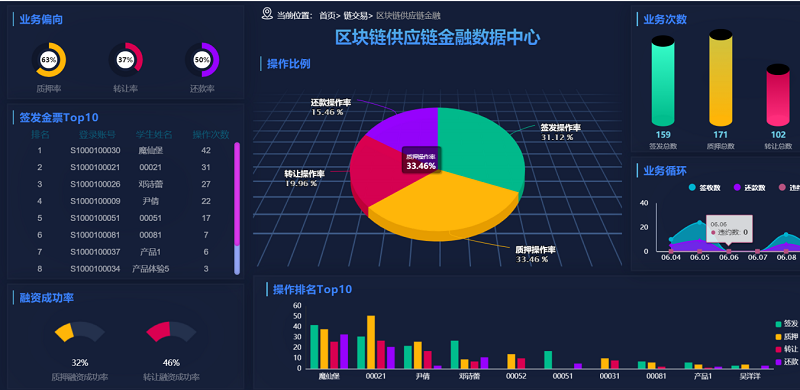 首先,智盛區(qū)塊鏈金融應(yīng)用創(chuàng)新平臺(tái)選用了供應(yīng)鏈金融、票據(jù)等經(jīng)典應(yīng)用場(chǎng)景作為案例,使學(xué)生了解區(qū)塊鏈技術(shù)在金融領(lǐng)域的應(yīng)用情況。