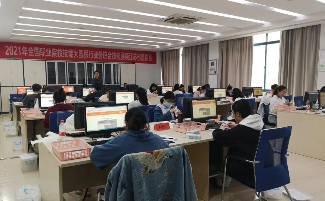 由江蘇省教育廳聯(lián)合財政廳、人力資源和社會保障廳等主辦的2021年度江蘇省(高職組)職業(yè)院校技能競賽“銀行業(yè)務綜合技能大賽”在江蘇財經(jīng)職業(yè)技術學院正式拉開帷幕,共有11支隊伍44名參賽選手同臺競技。